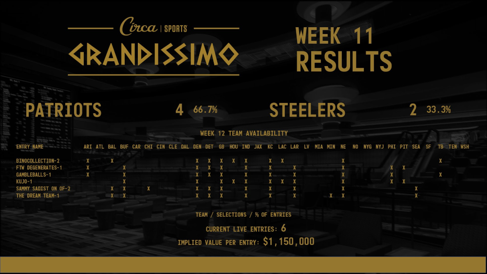 Circa Sports Grandissimo Week 12 Results